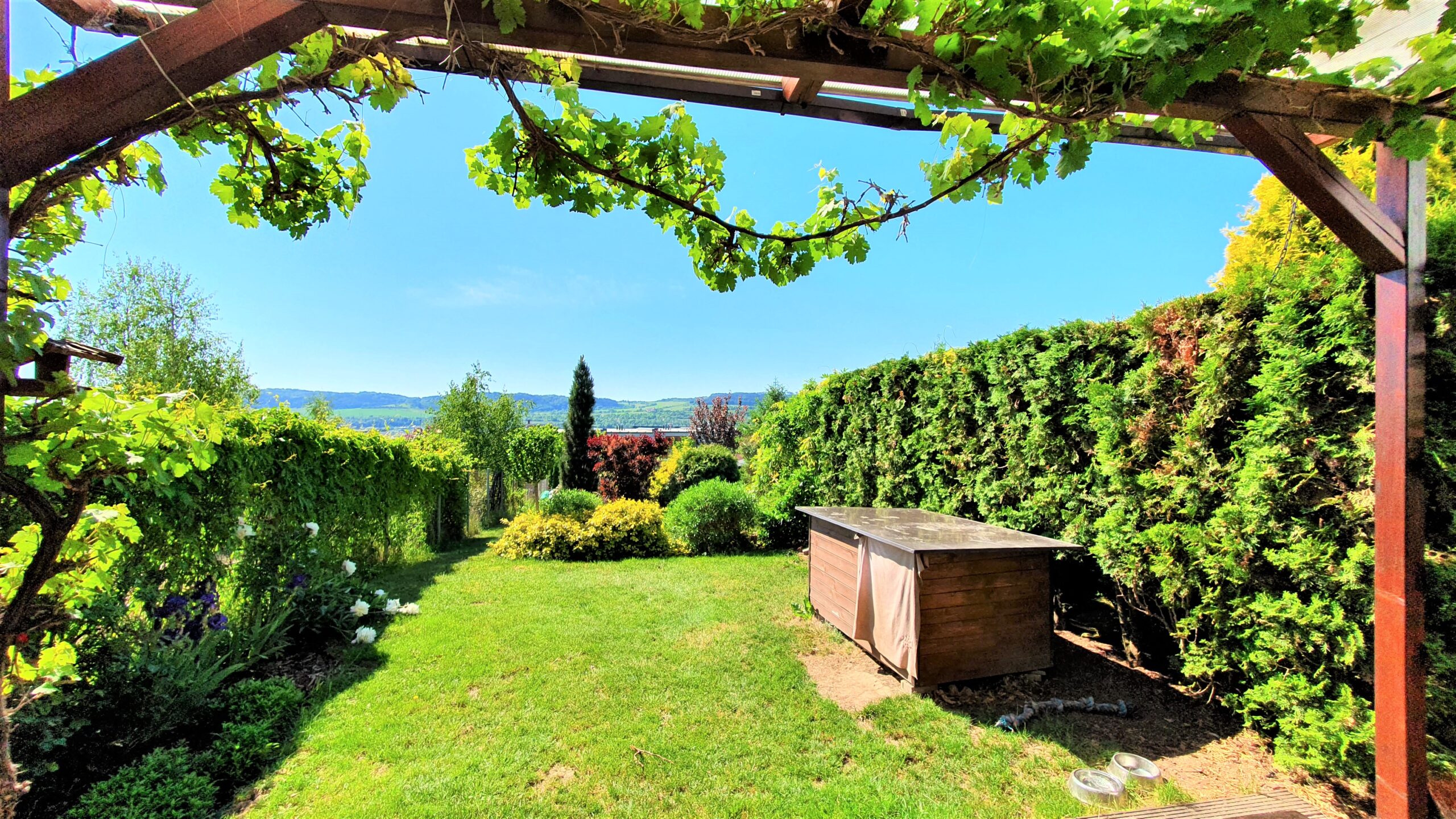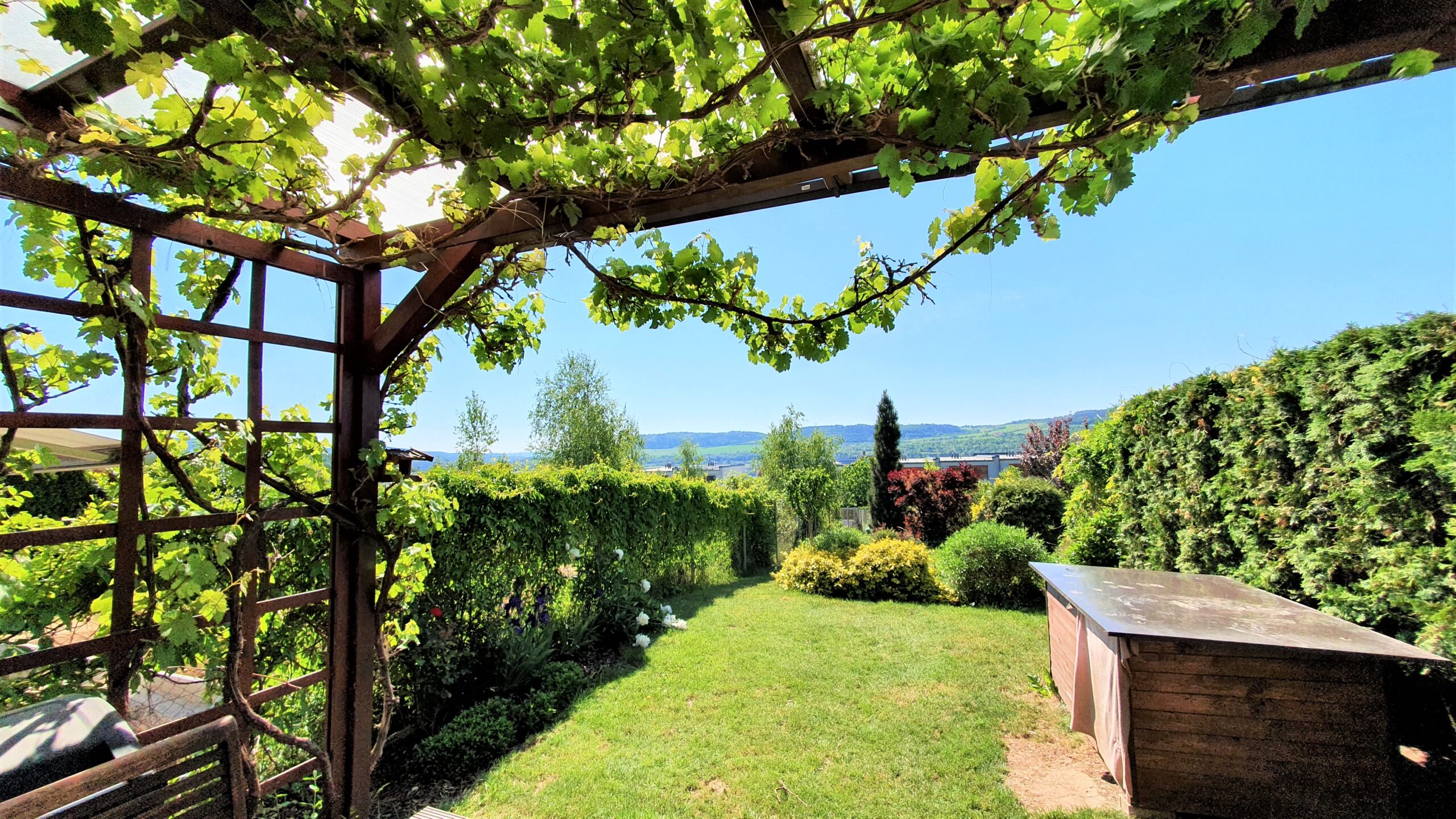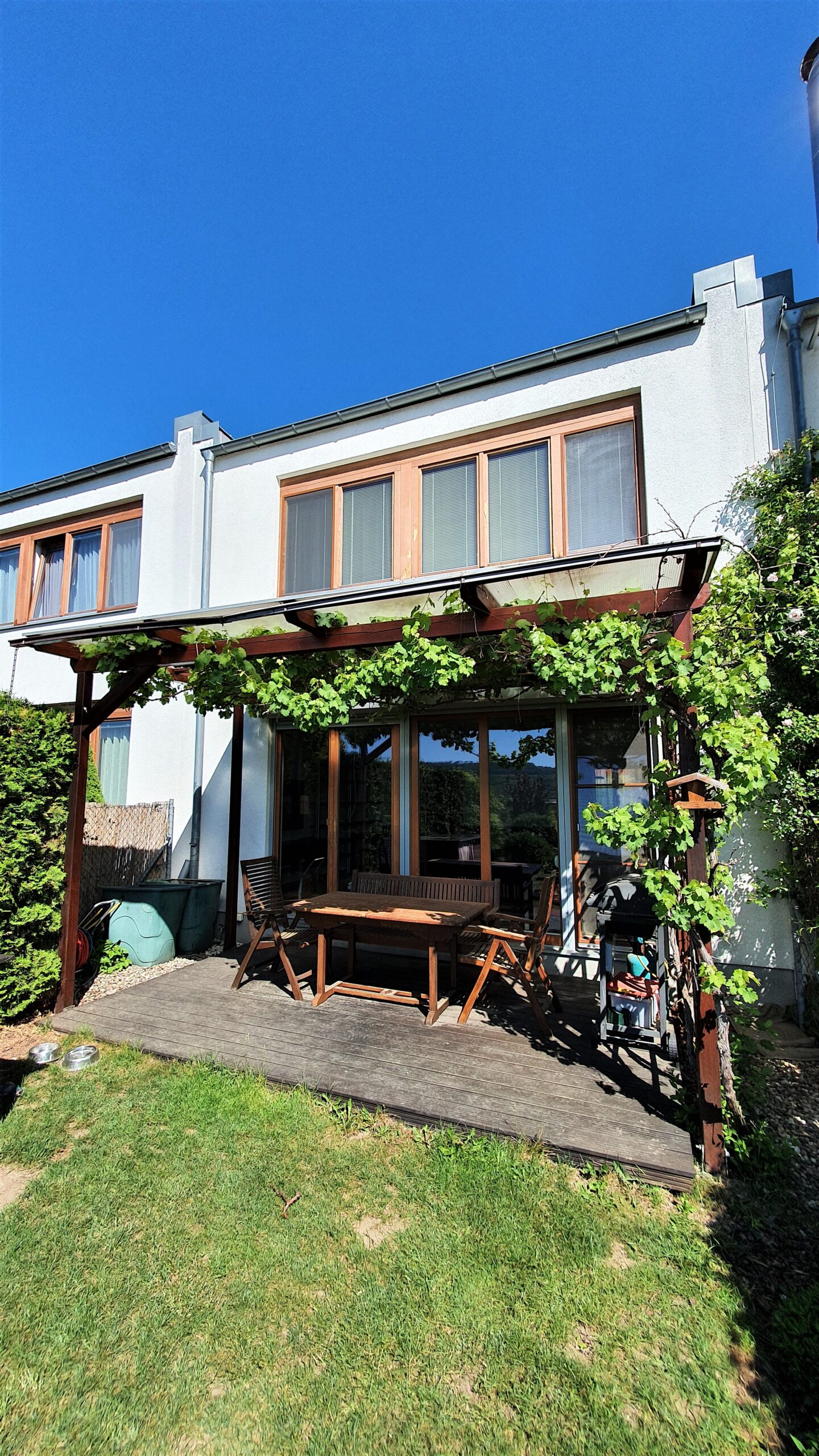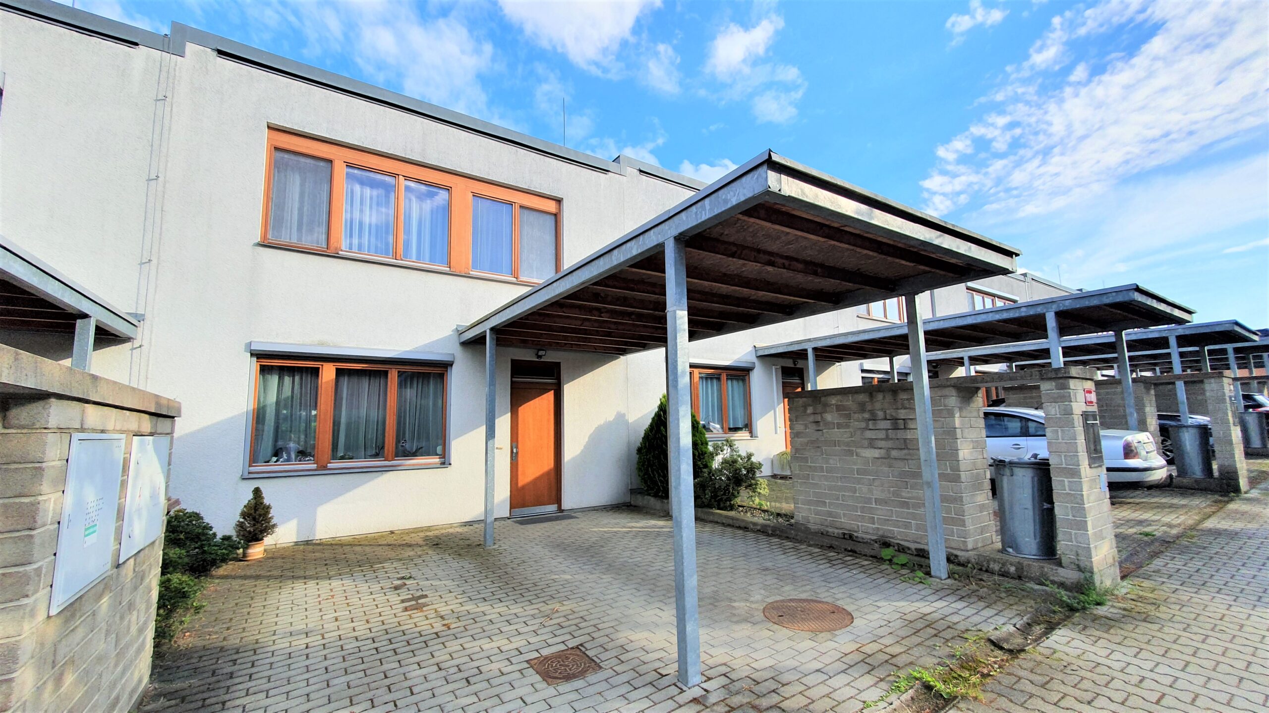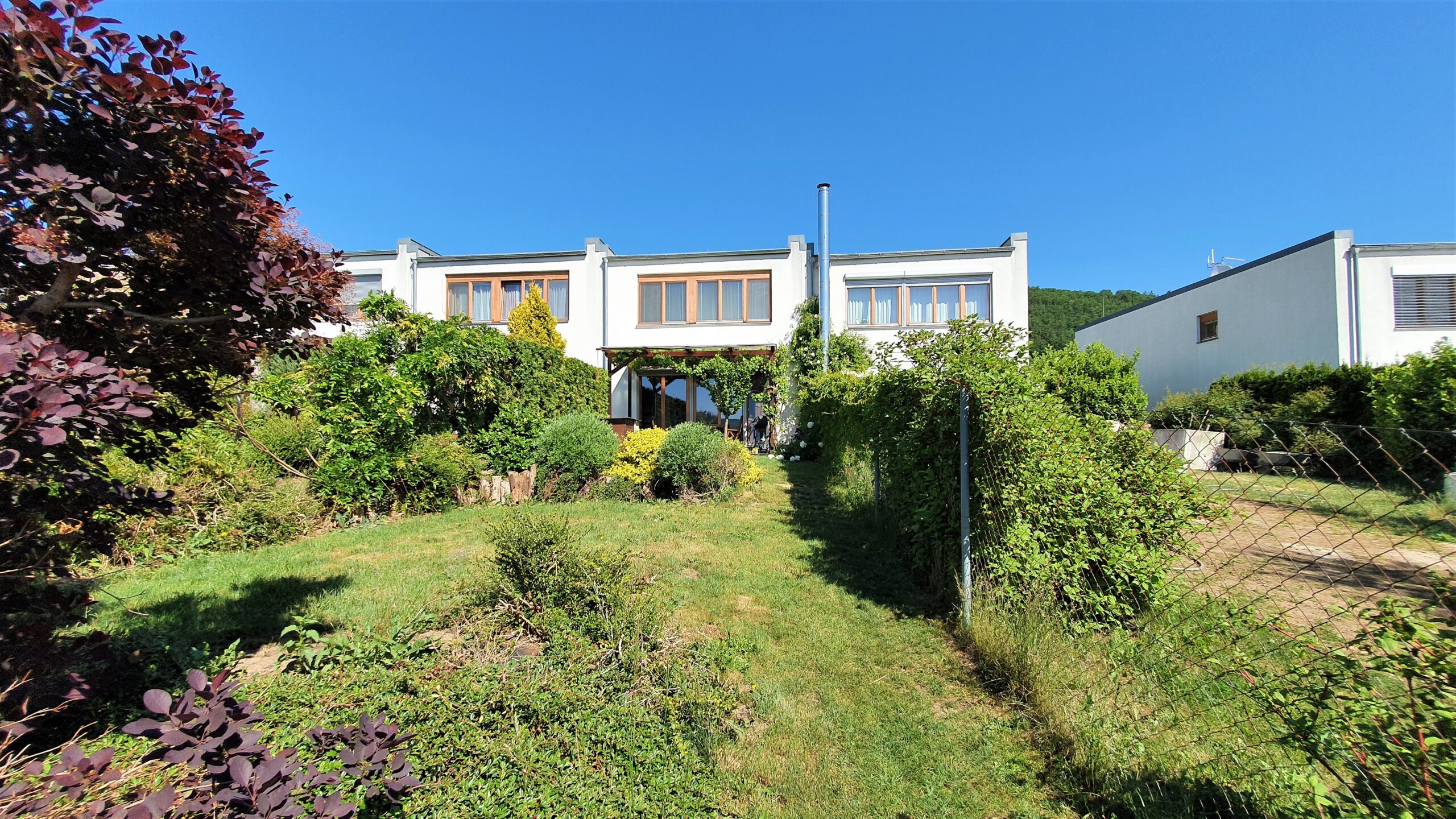 Tento energeticky velice úsporný dům s obytnou plochou 143m2 má dvě vlastní parkovací stání přímo u domu a krásnou vzrostlou zahradu (300 m2) s pergolou vč. grilu a zahradním domkem.