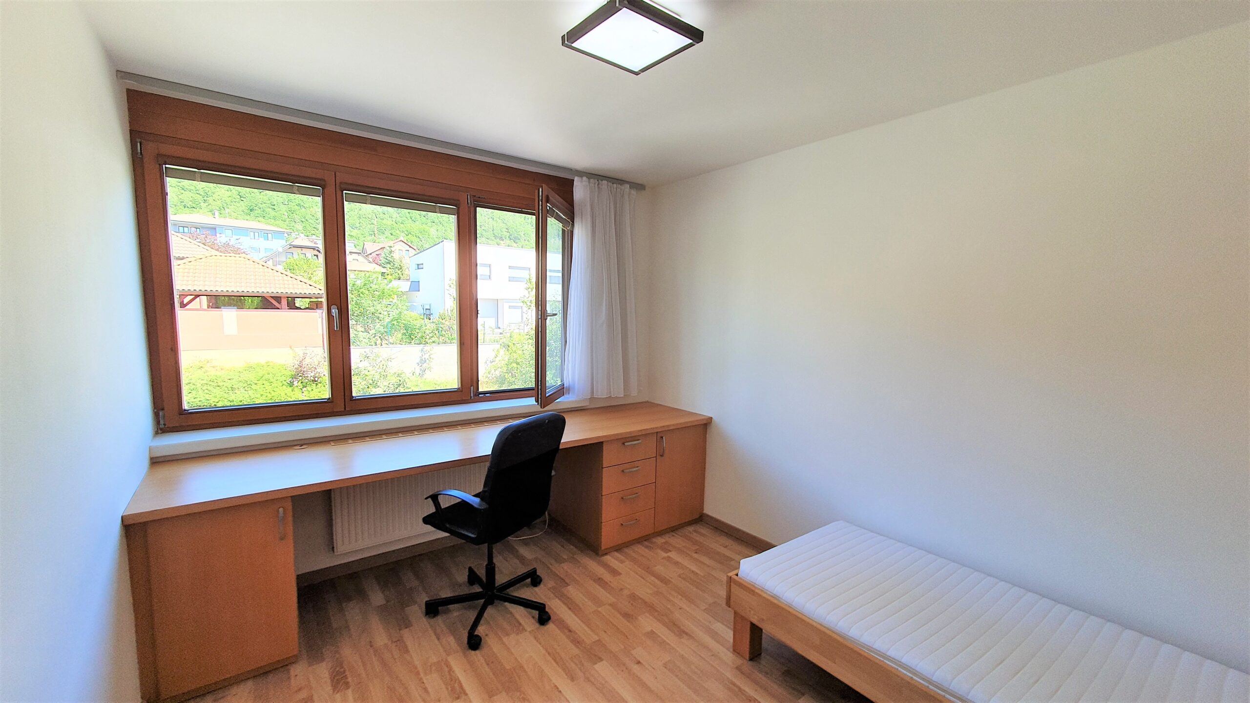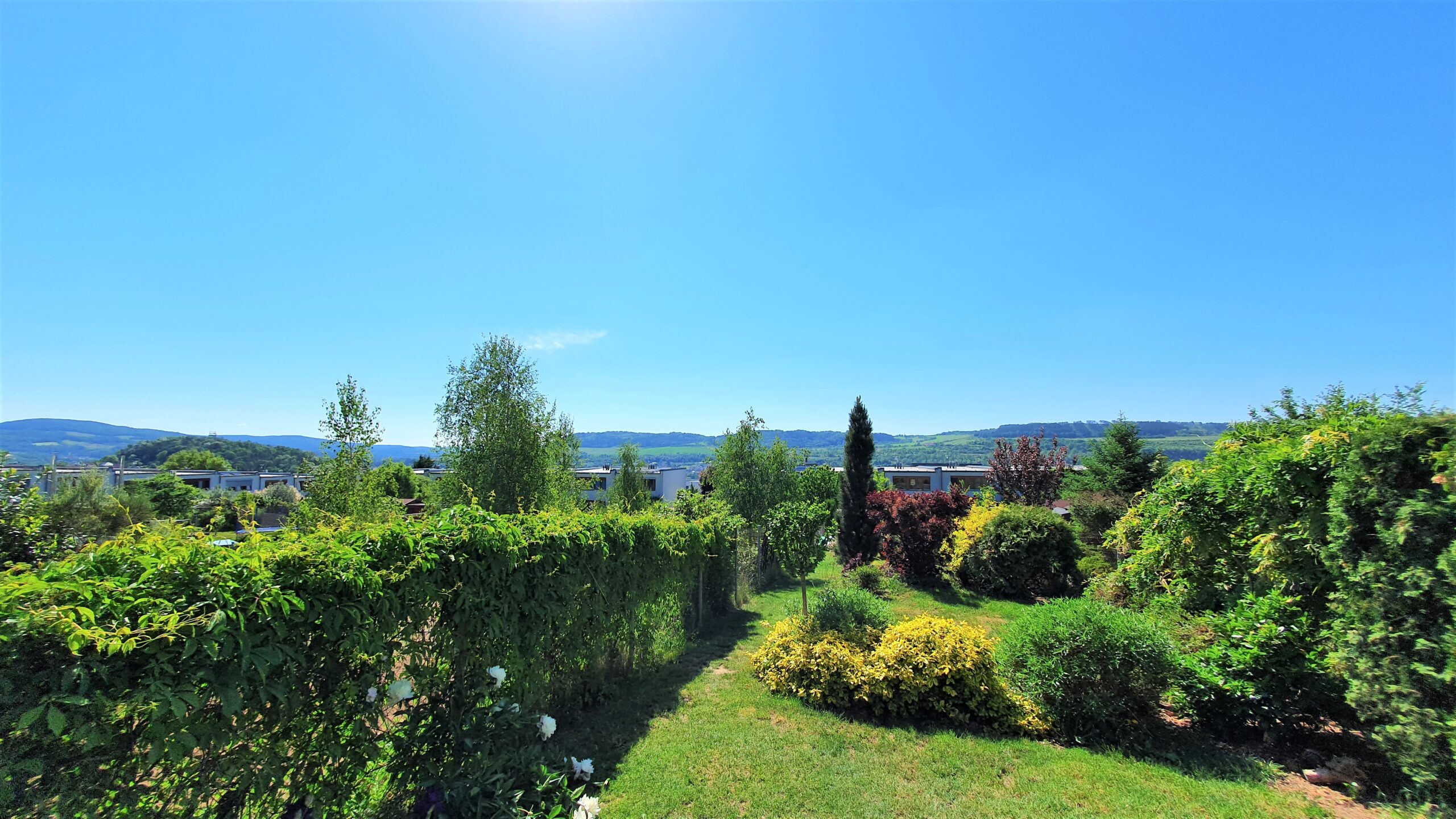 Díky praktické orientaci na S a J si budete užívat celodenní slunce na zahradě, nádherný výhled do zeleně a v noci klidný spánek.