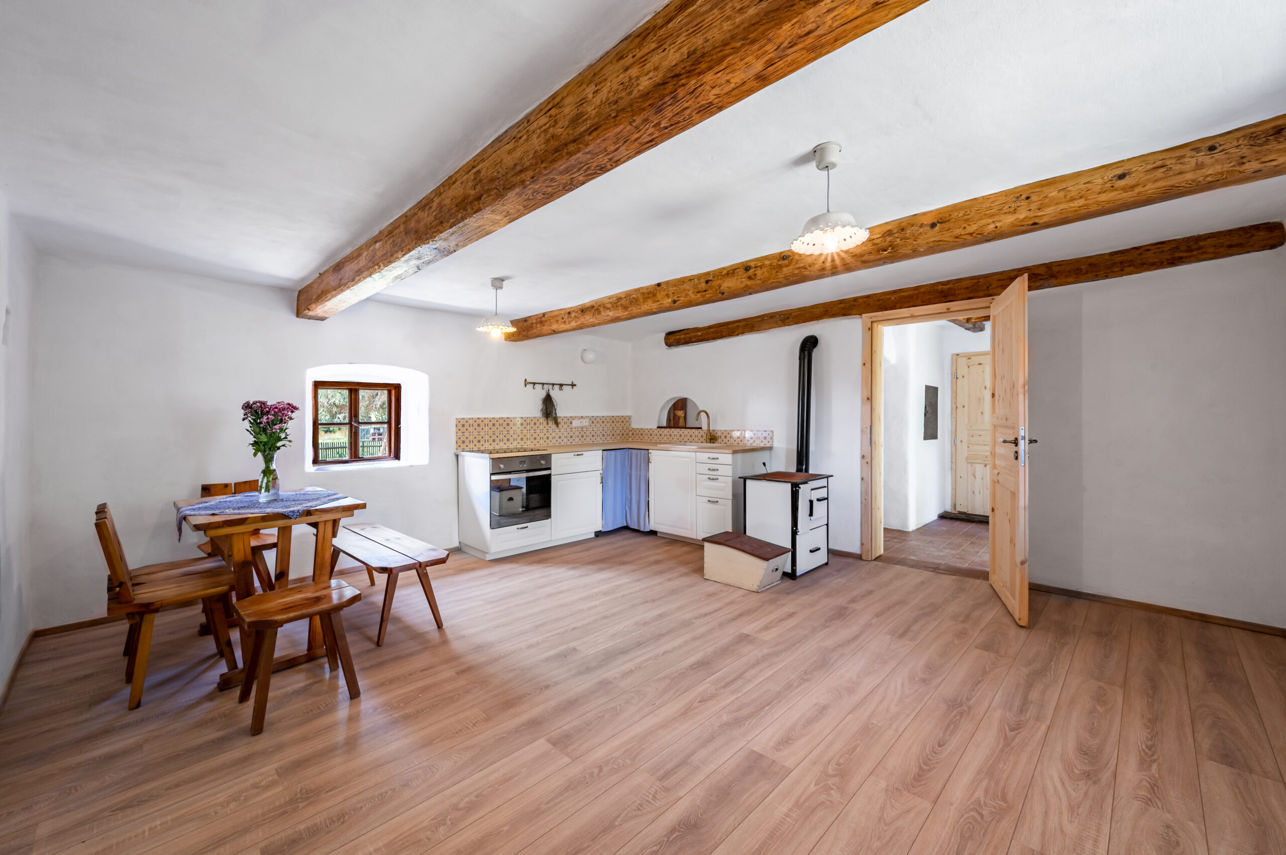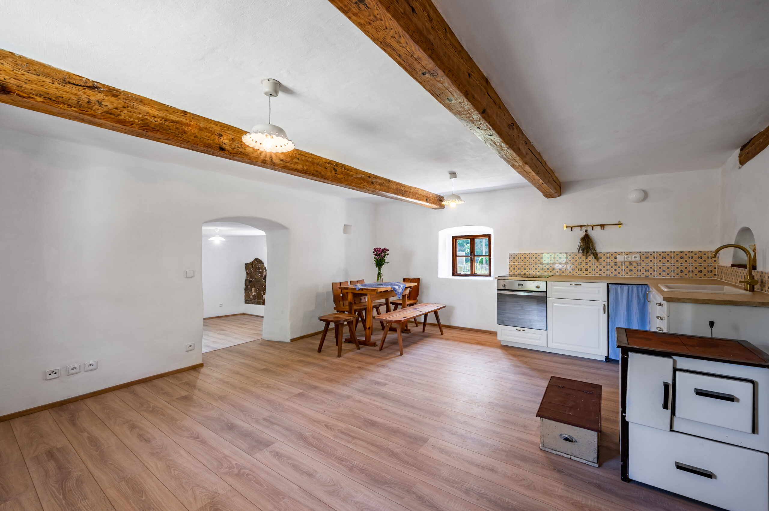 Interiér si zachoval svůj tradiční styl v kombinaci s moderními prvky pro pohodlné bydlení.