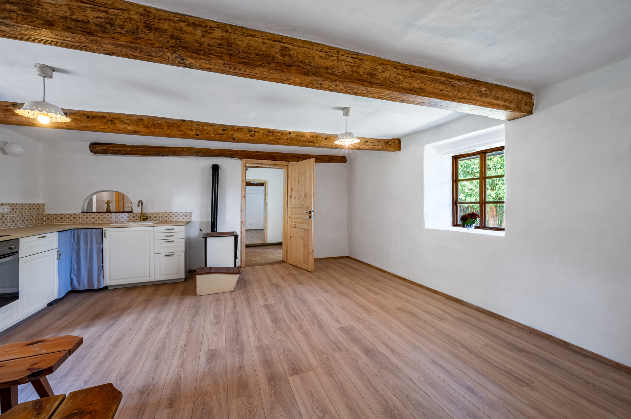 Tradiční selská chalupa je po právě dokončené a velice zdařilé celkové rekonstrukci a vyžaduje tak jen minimální investice do vybavení interiéru.