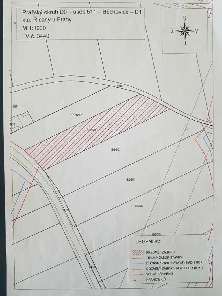 Dle územního plánu na dostavbu úseku silničního okruhu „D0 511 Běchovice-D1“ a stanoviska ŘSD dojde k výkupu parcely za hodnotu osminásobku ceny půdy a to předběžně v roce 2021/2022. Finální výkupní cena však může být mnohem vyšší.