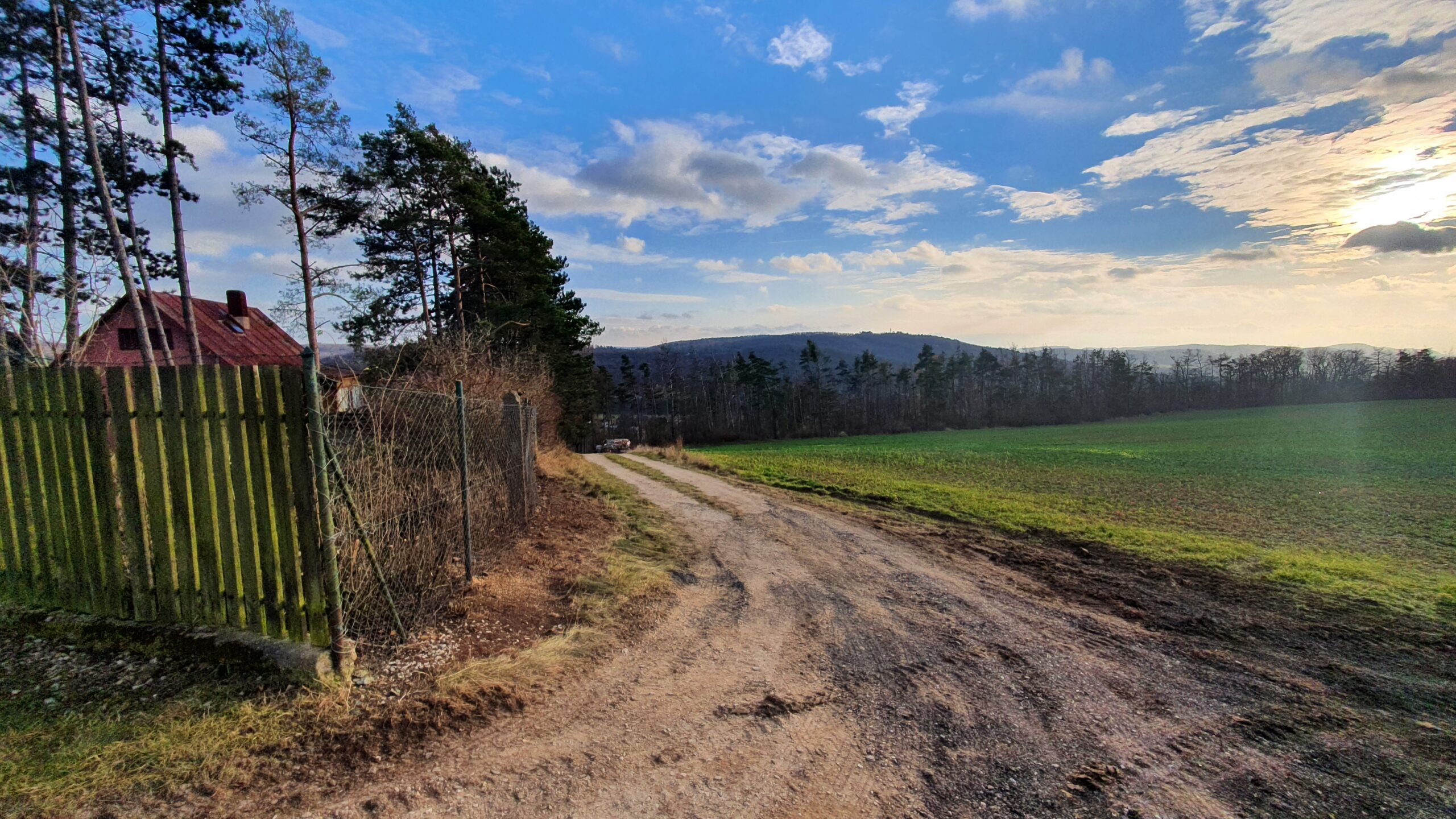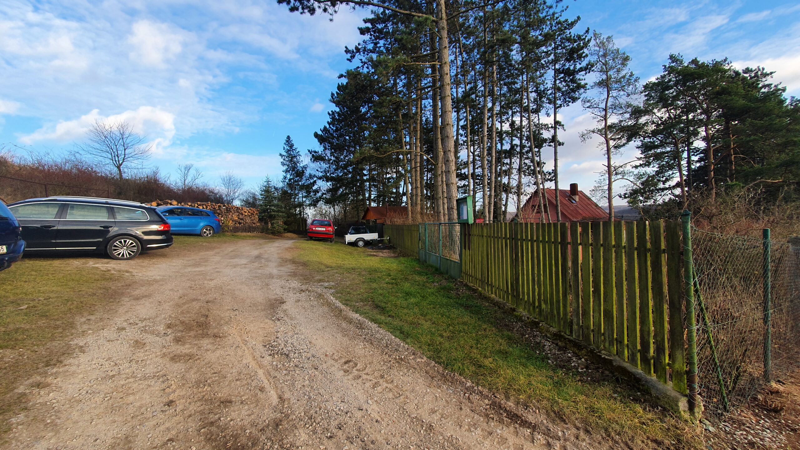 Ideální poloha pozemku umístěného v malé chatové osadě nabízí téměř nerušený klid uprostřed přírody a nádherný výhled do širokého okolí.
