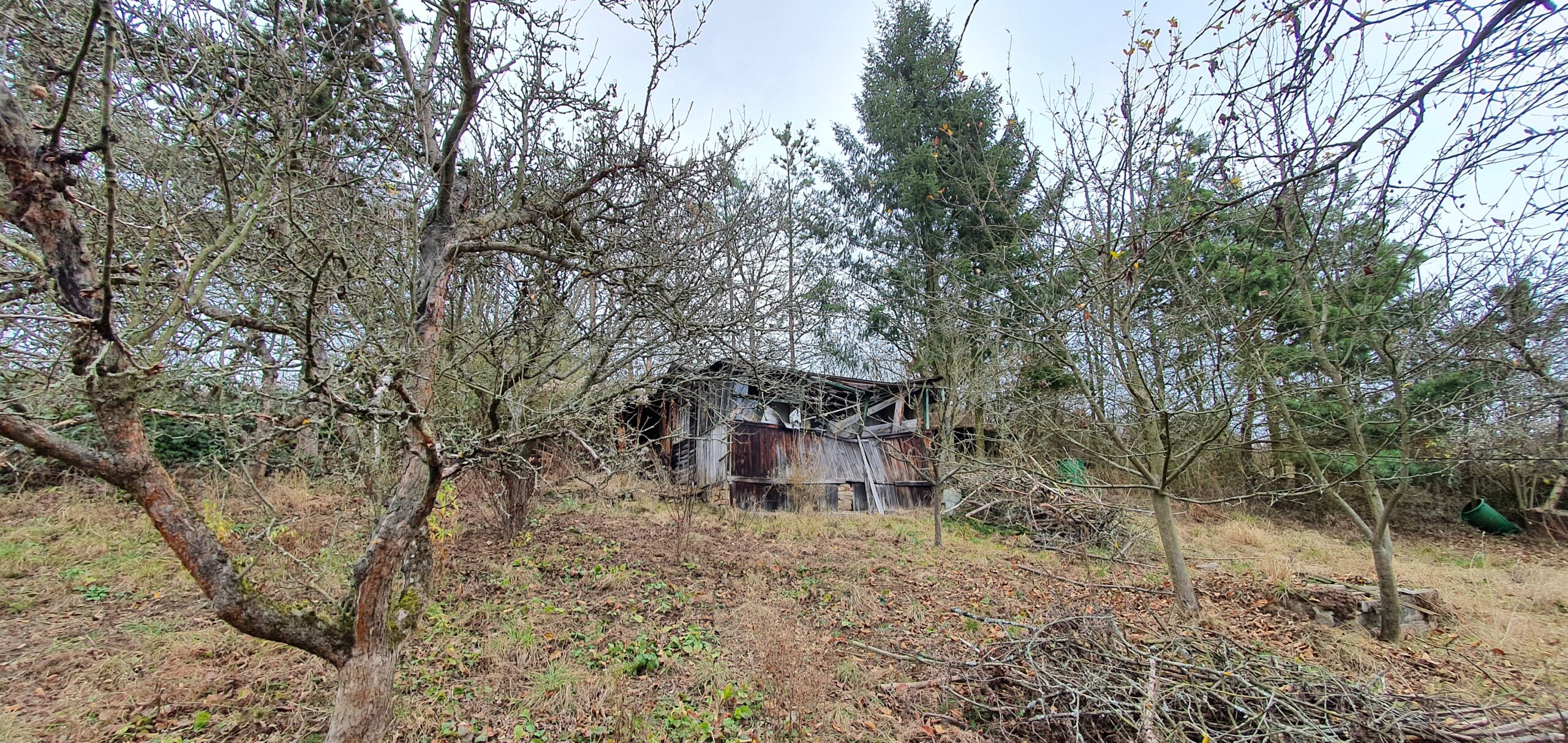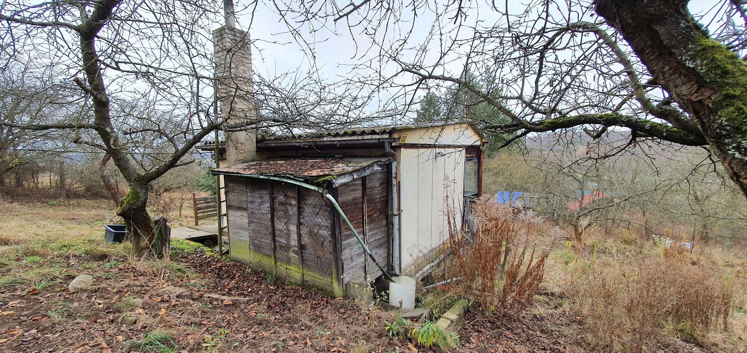 Součástí jsou dvě dřevěné chaty na podezdívce ve stavu vhodném k demolici. Na zahradě se nachází několik vzrostlých ovocných stromů.