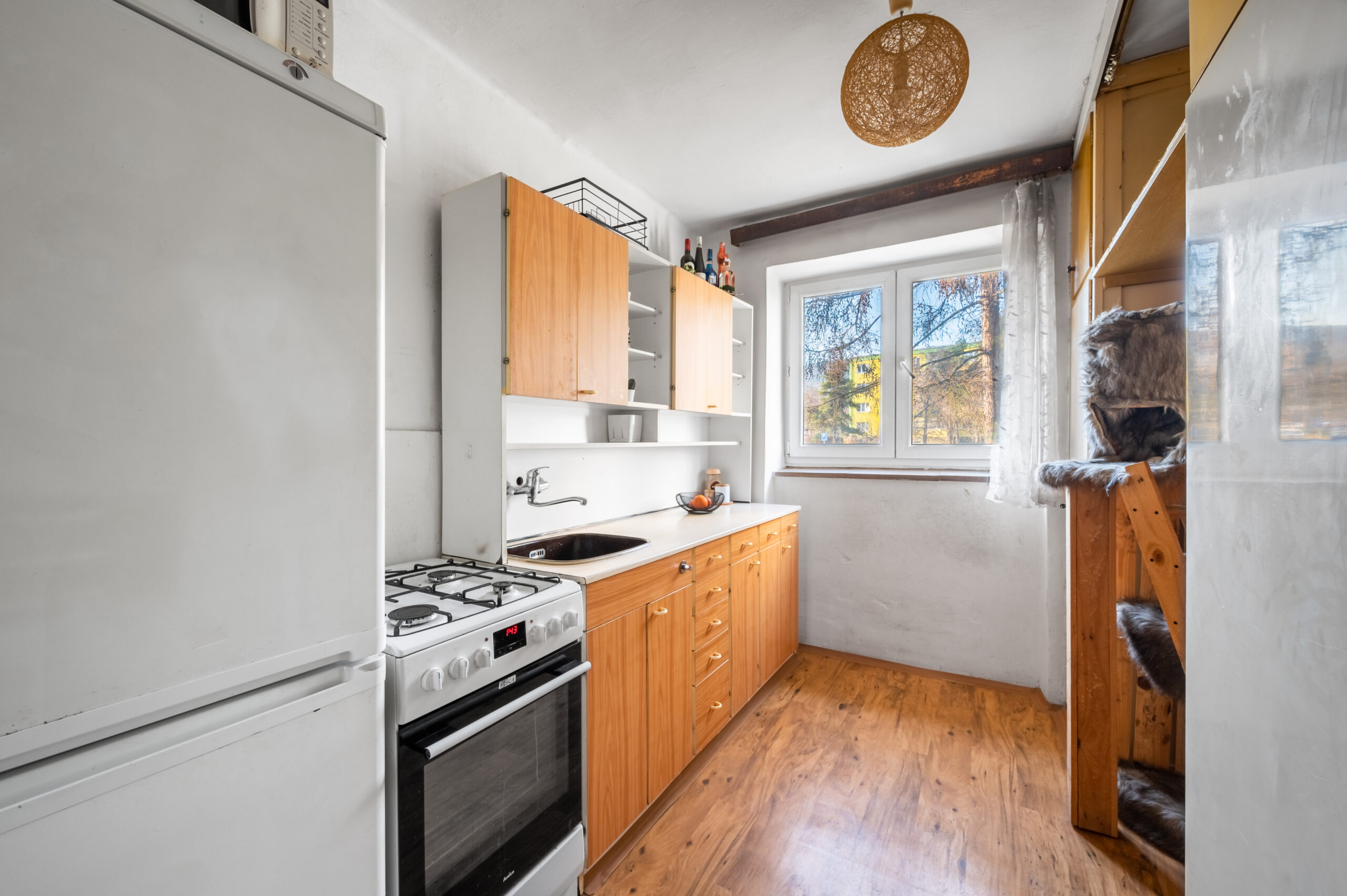 Interiér bytu nabízí dostatek pohodlí a úložného prostoru s nízkými provozními náklady. Navíc k bytu patří prostorná sklepní kóje (3 m2) v suterénu domu.