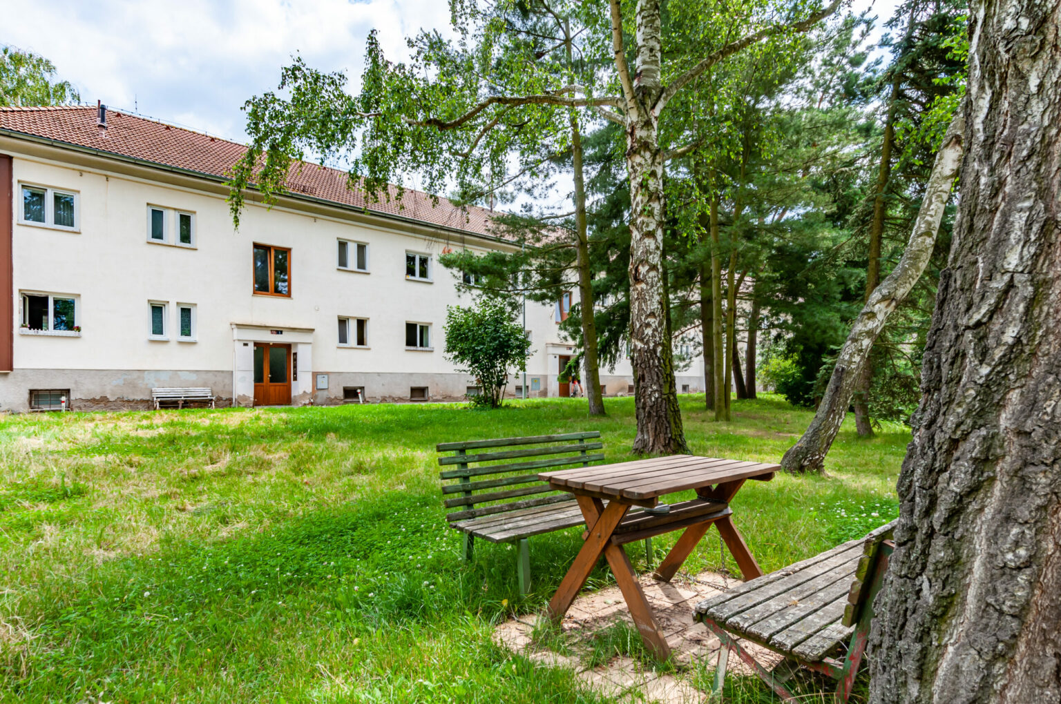 Byt s nádherným výhledem do zeleně se nachází ve zvýšeném přízemí dvoupodlažního cihlového domu s vlastním sklepem o výměře 8 m2 v podzemním podlaží.