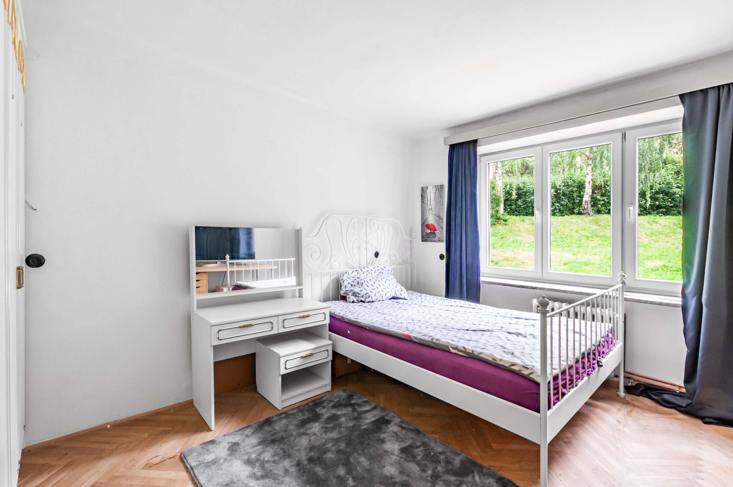 V obou obytných místnostech orientovaných na jih jsou parkety, kuchyň s koupelnou mají orientaci na severní stranu.