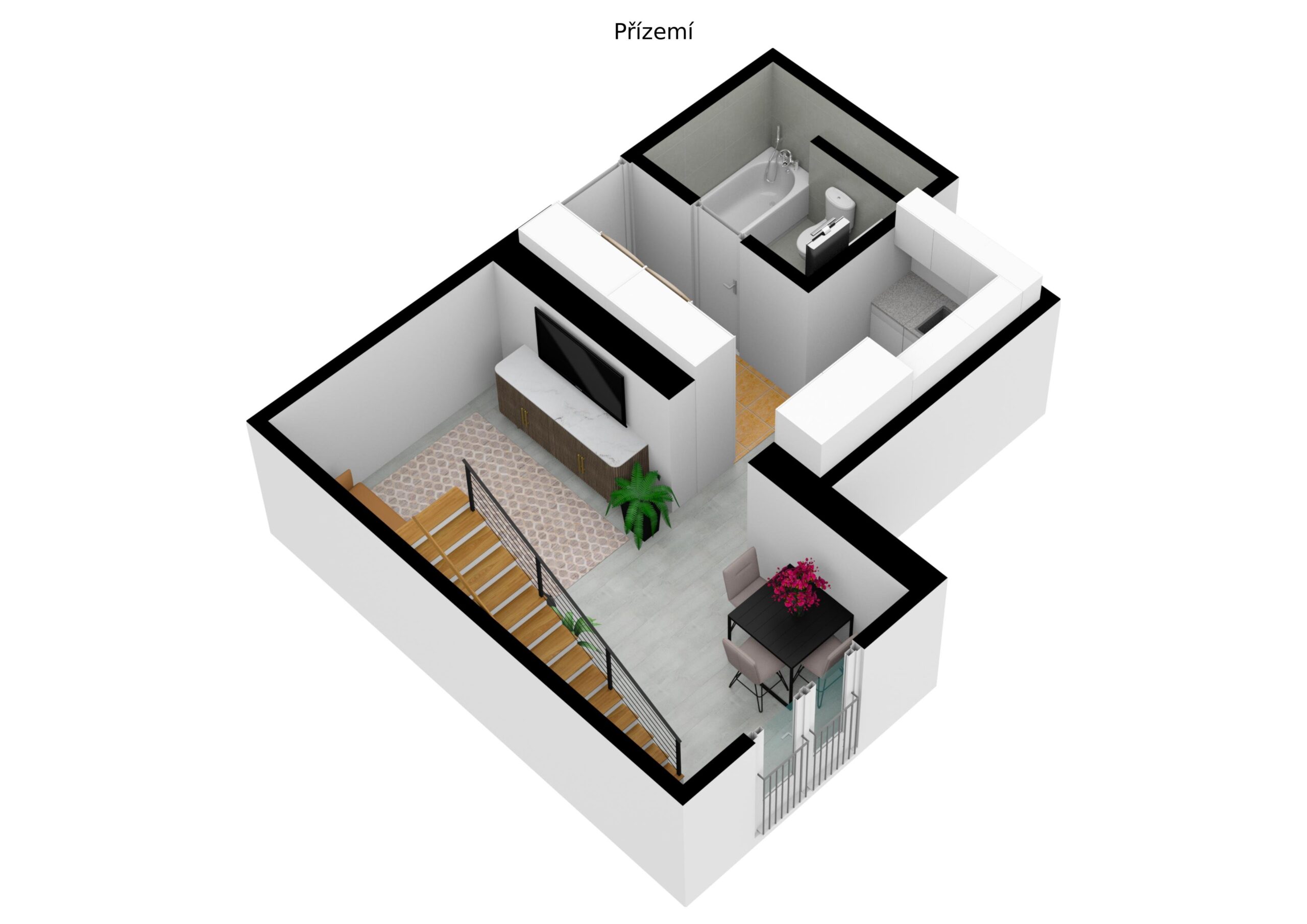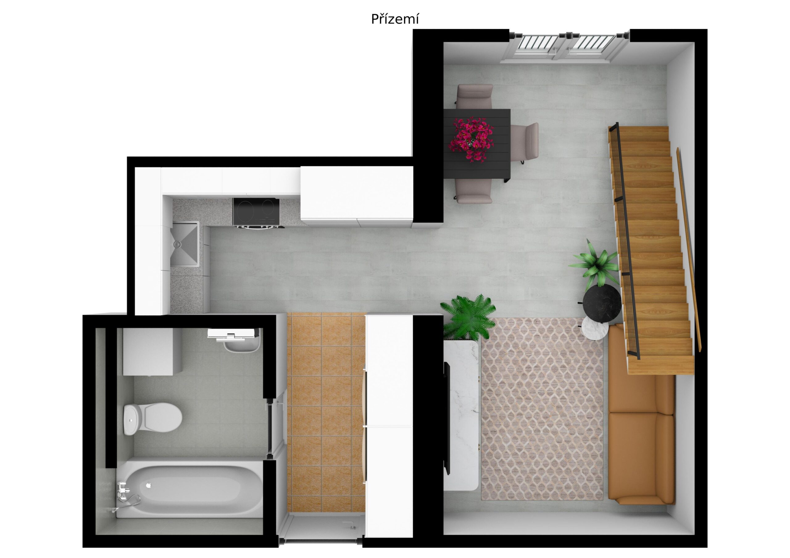 V exkluzivním zastoupení nabízím pronájem moderního mezonetového bytu 2+kk po právě dokončené kompletní rekonstrukci.