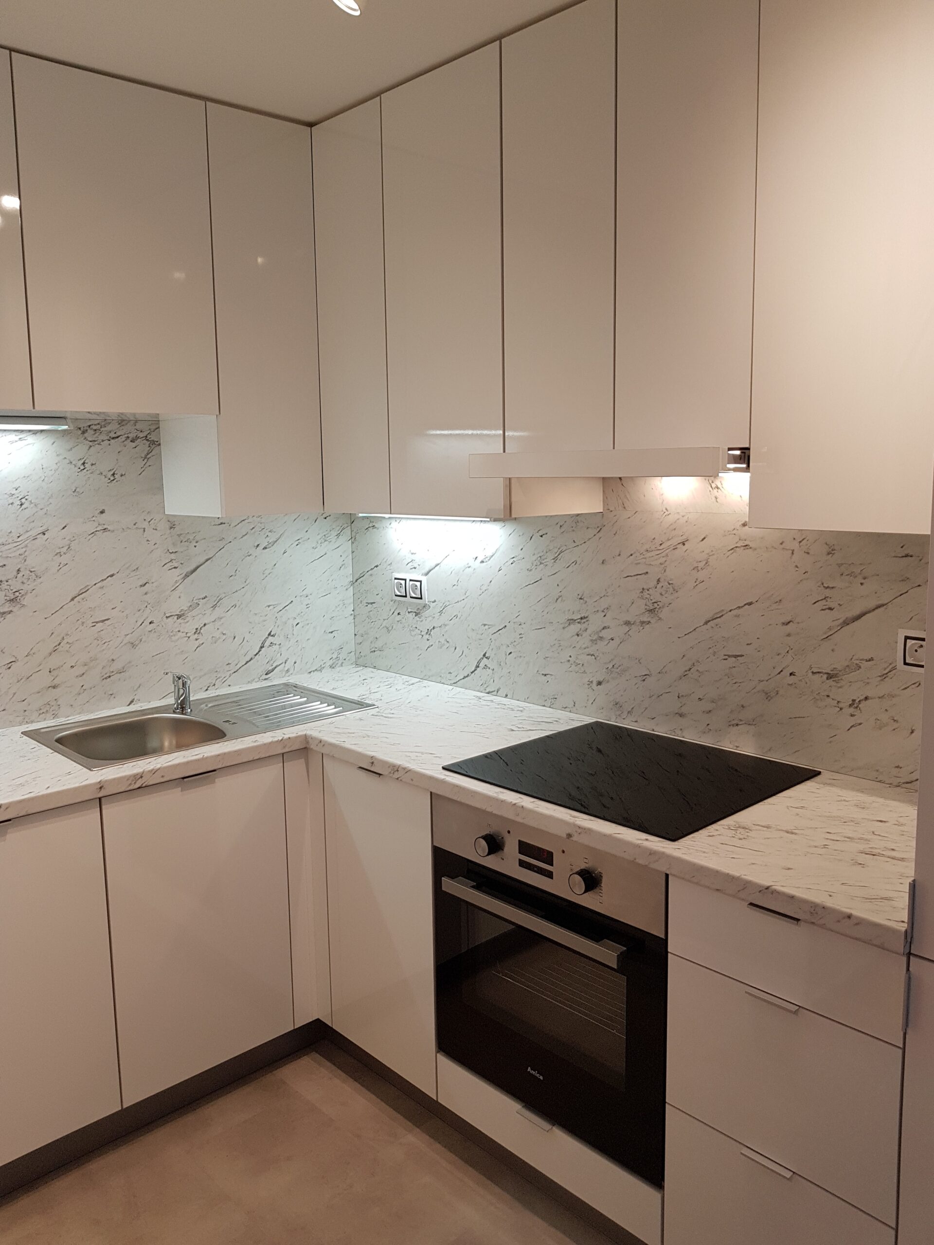 V bytě se nachází nová moderní kuchyňská linka vybavena lednicí s mrazákem značky ETA, sklokeramickou varnou deskou a digestoří. Součástí nové koupelny je vana a WC.