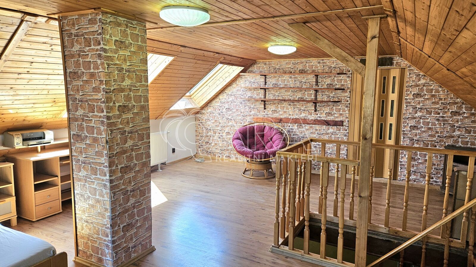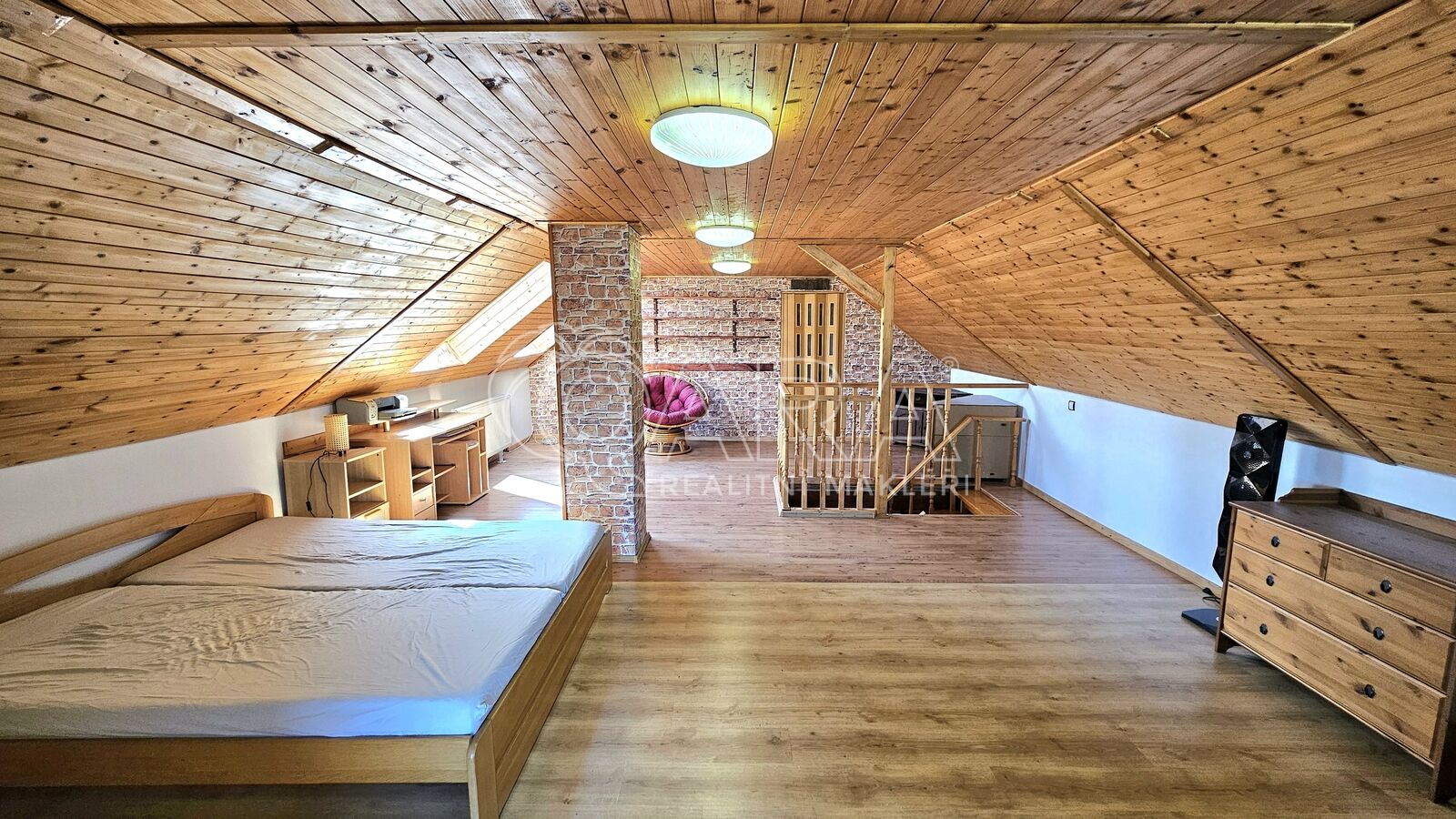 prostorný podkrovní pokoj s krásným výhledem (ideální jako dětský pokoj, pracovna či ateliér)