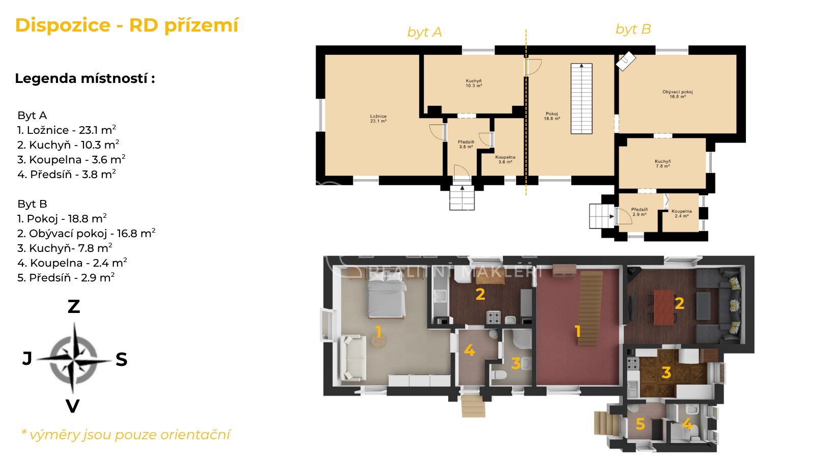 Dům tvoří dvě samostatné bytové jednotky s možností propojení: