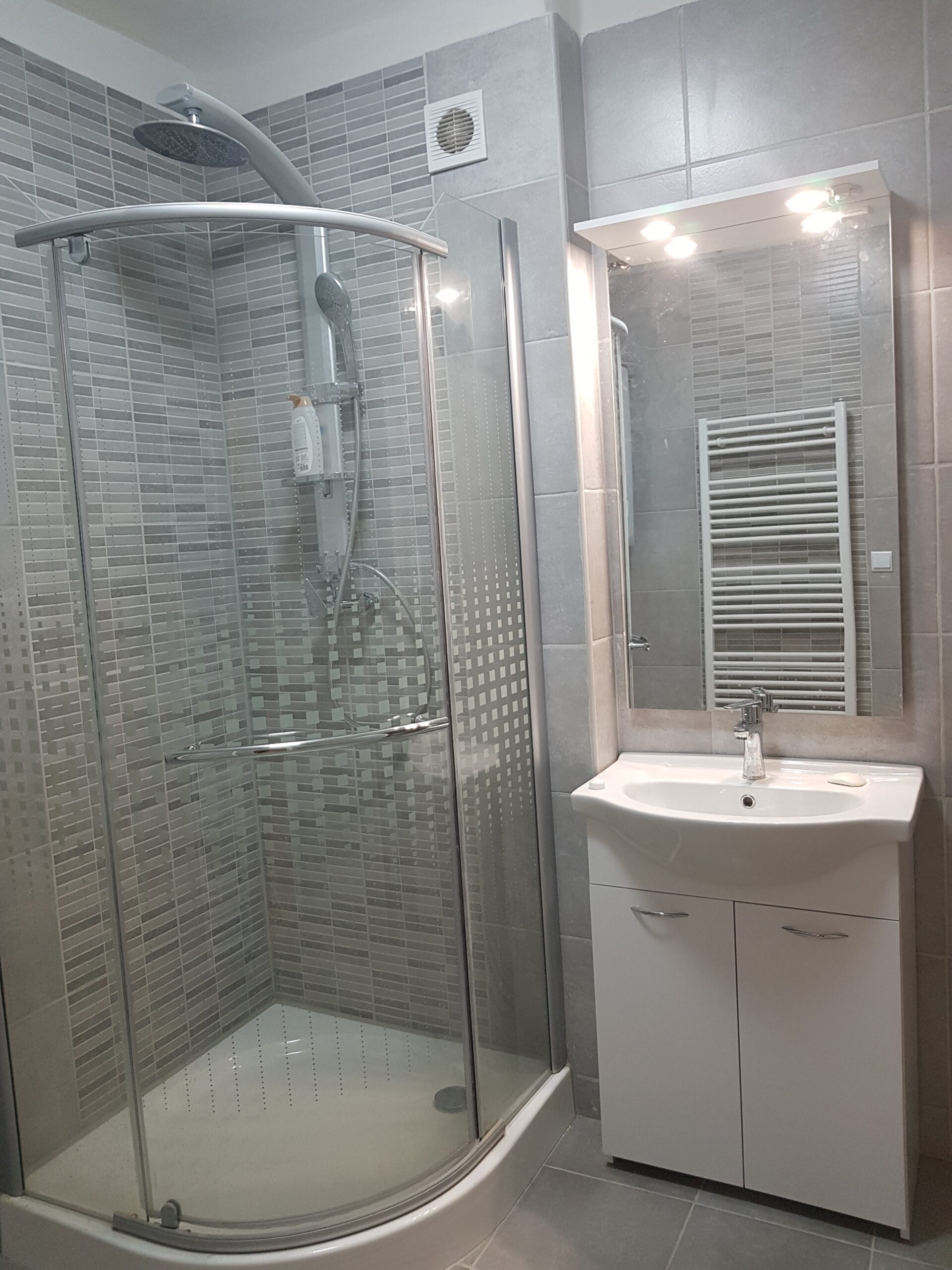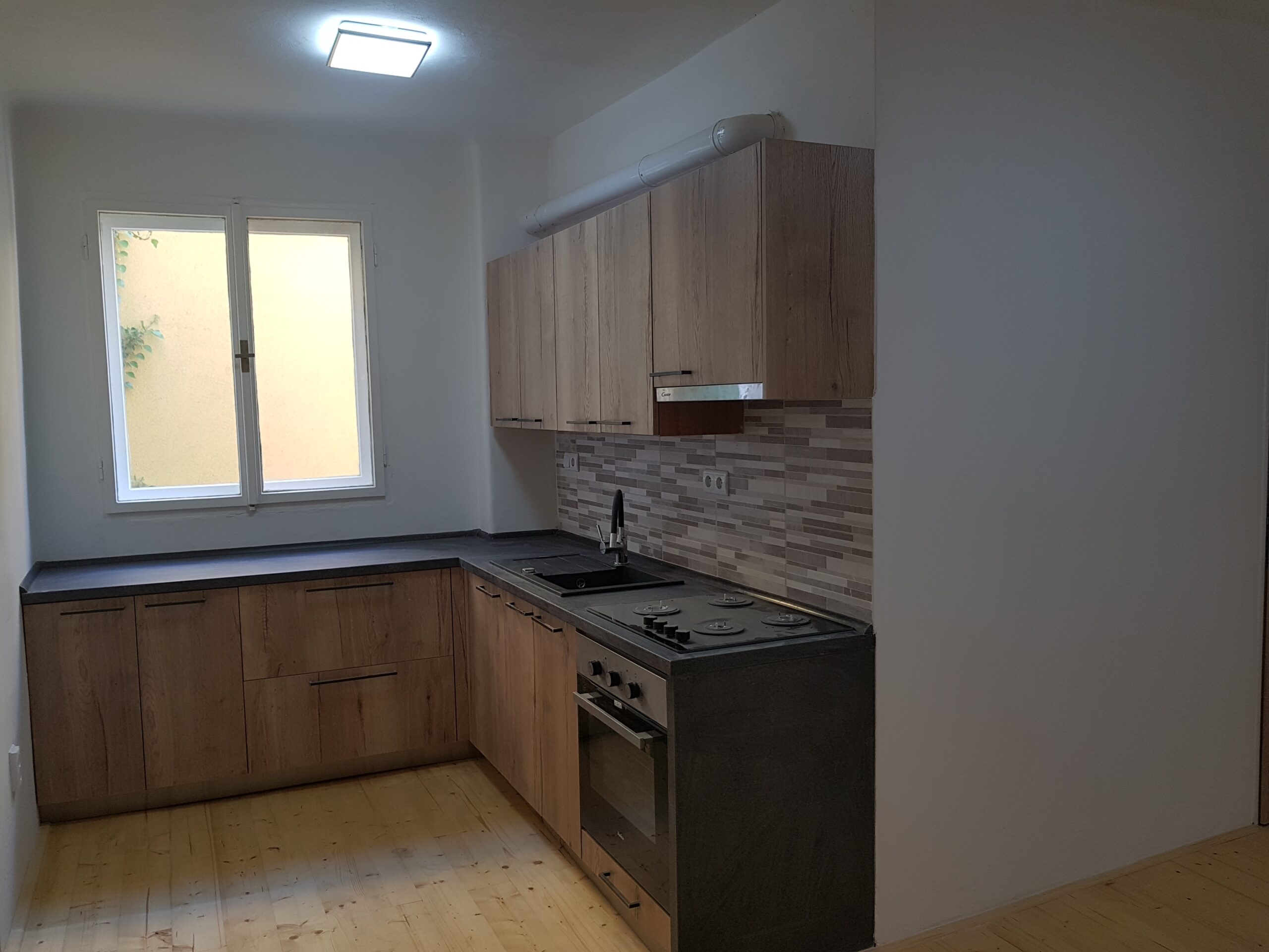 V bytě se nachází nová moderní kuchyňská linka vybavena plynovou troubou se sporákem a digestoří. Součástí nové koupelny je luxusní sprchový kout s WC odděleným posuvnými dveřmi a vlastní plynový kotel.