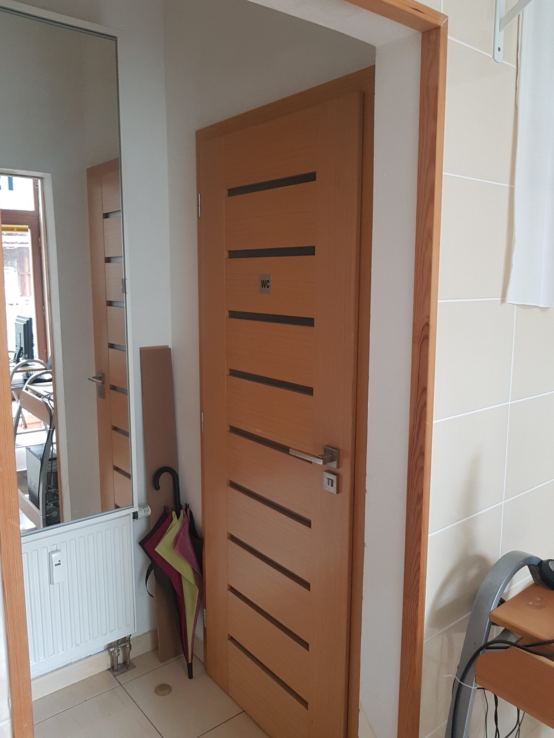 Součástí pronájmu je menší šatna a toaleta v zadní části prostoru.