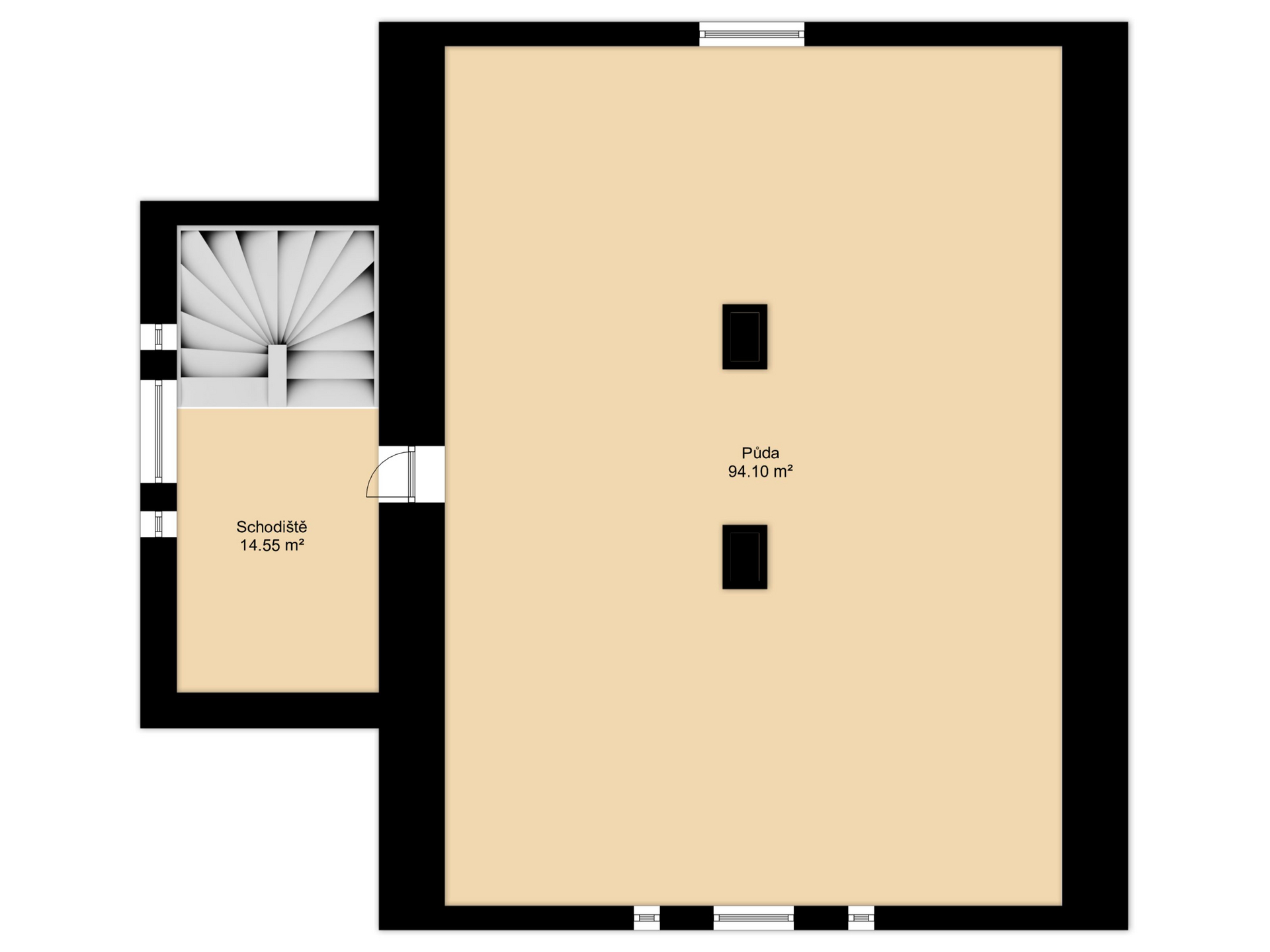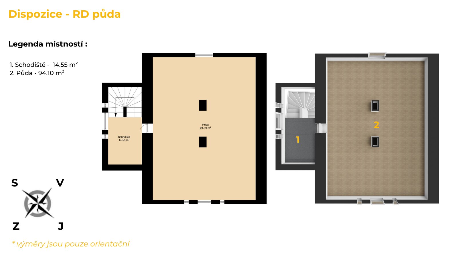 Velkým benefitem je podkroví o velikosti 94 m²: