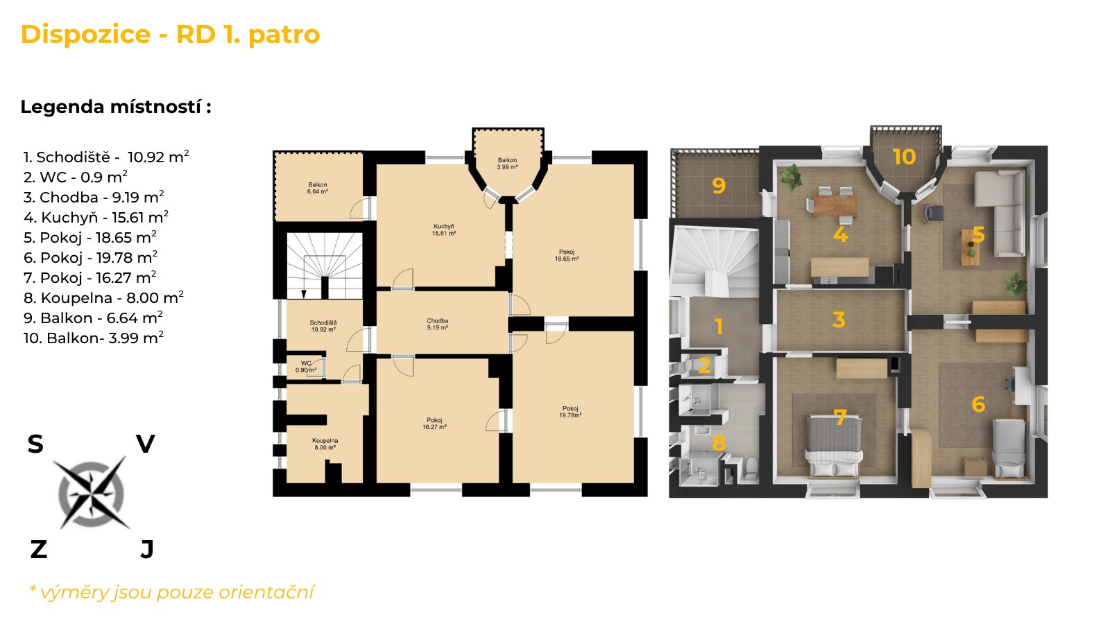 ✔ Byt 4+1 (88 m² v 1. patře + 94 m² v podkroví)