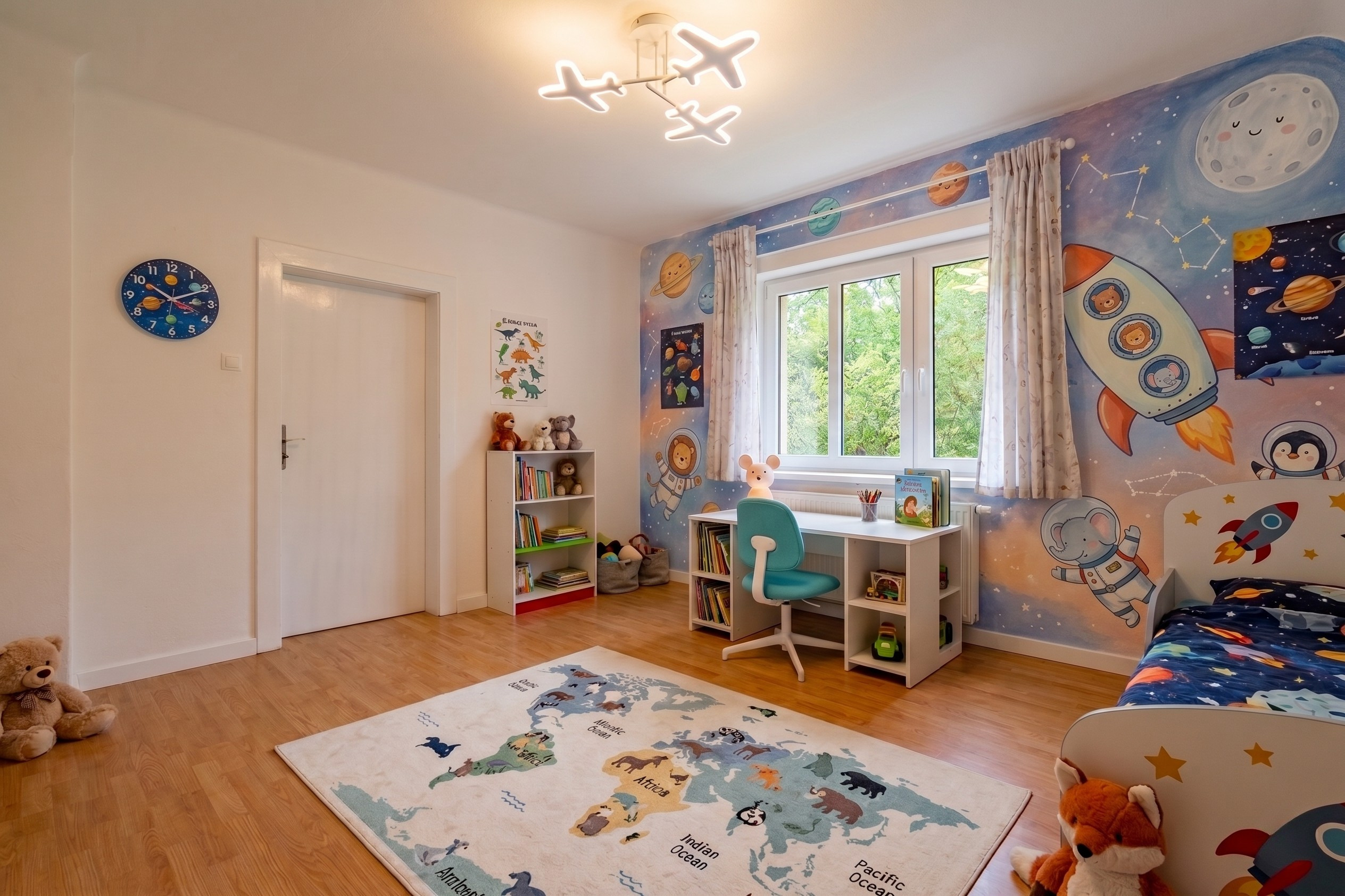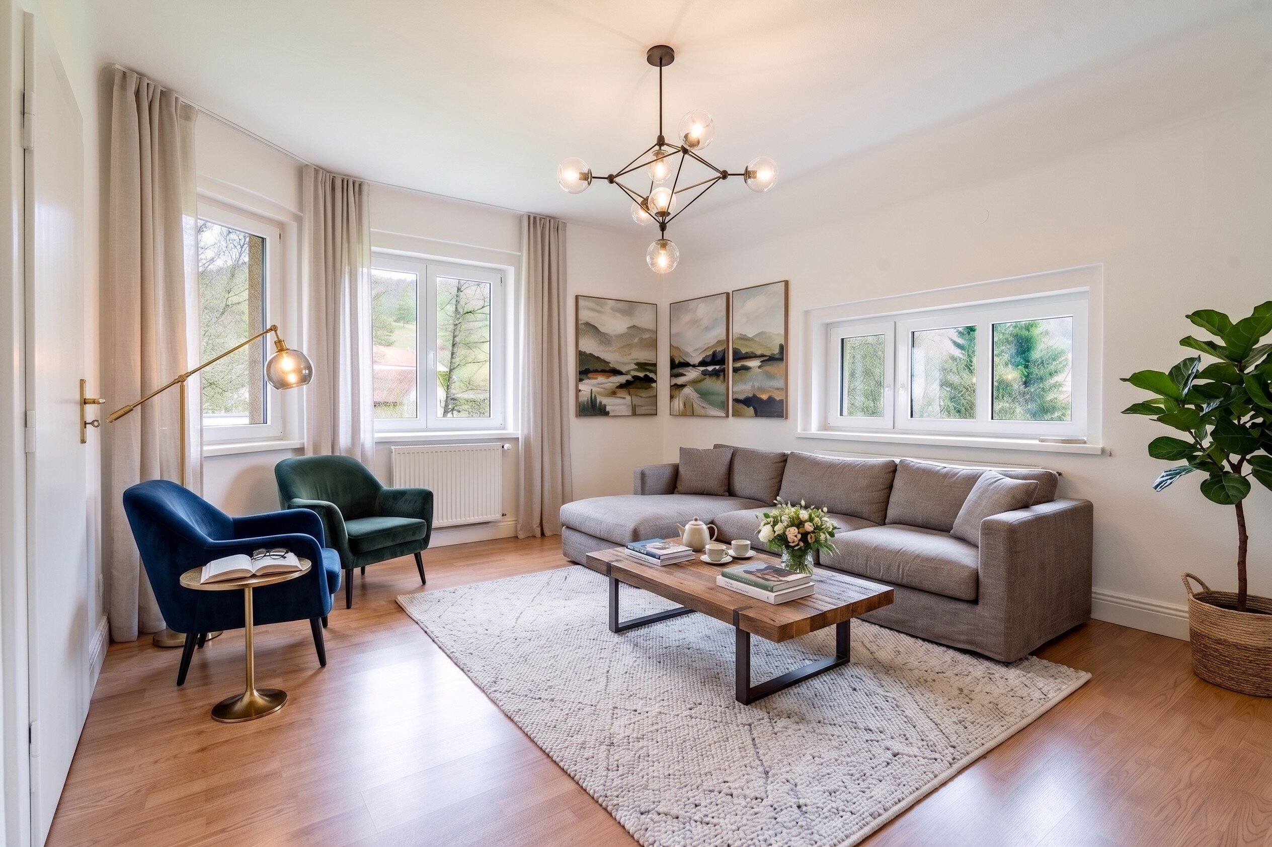 ✔ obývací pokoj a další dva propojené pokoje (ložnice, dětský pokoj)