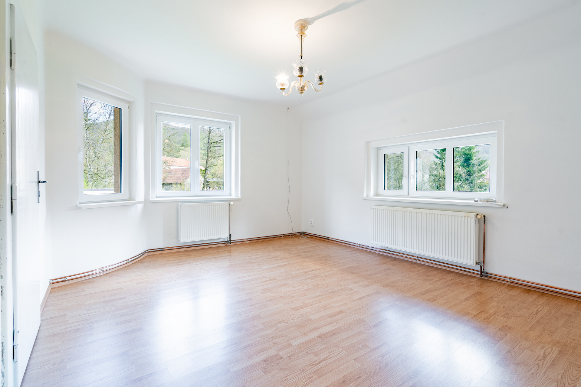 Prostorný a slunný interiér nabízí možnost úprav dle vašich představ.