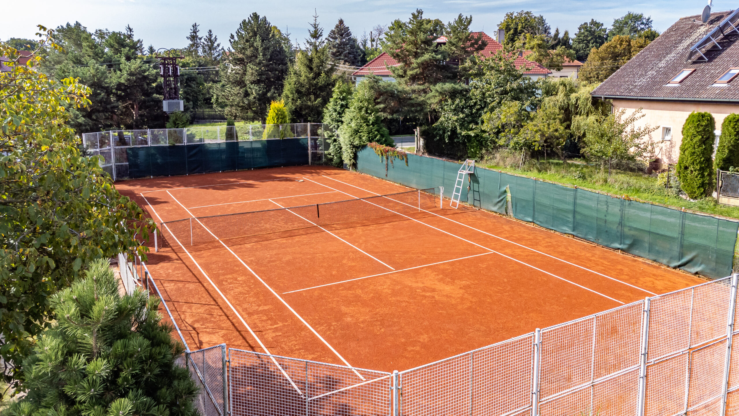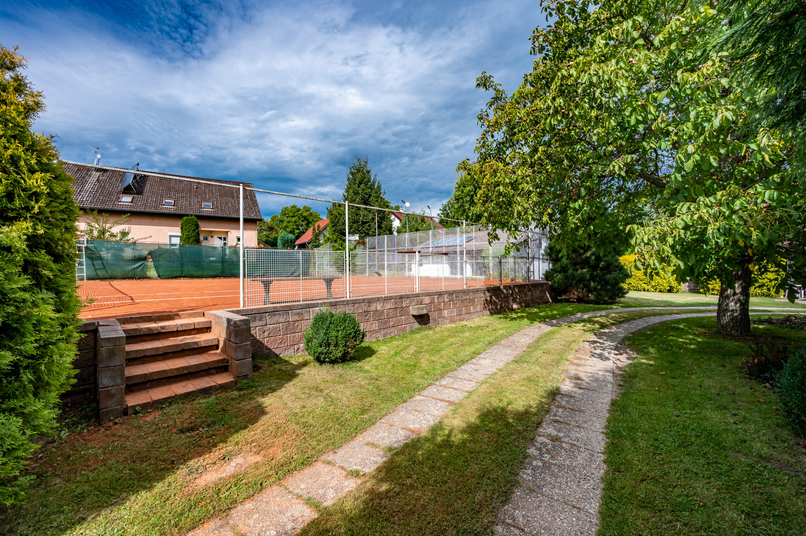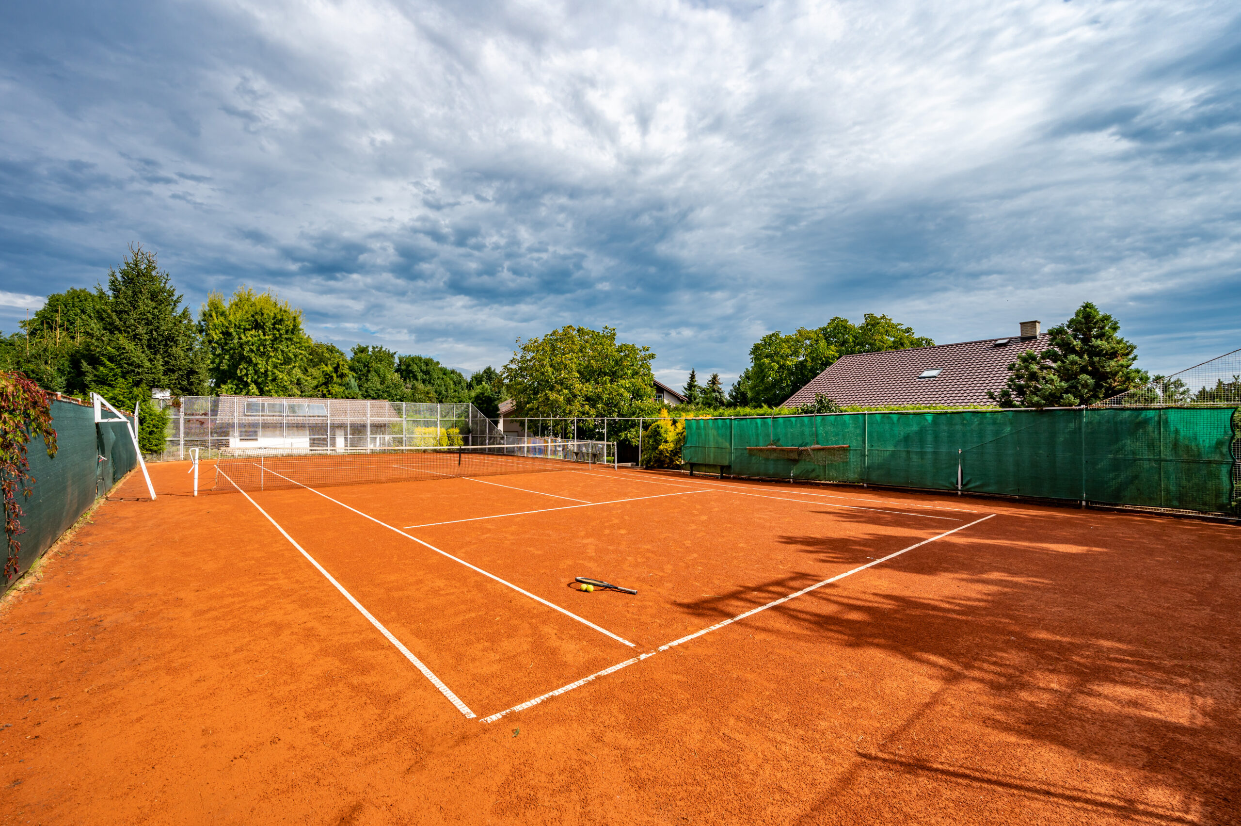 Tenisové nadšence jistě okouzlí privátní antukový kurt s dokonalým zázemím (vč. solárního ohřevu vody), případně lze využít prostor kurtu (530 m2) po úpravě k jinému účelu.