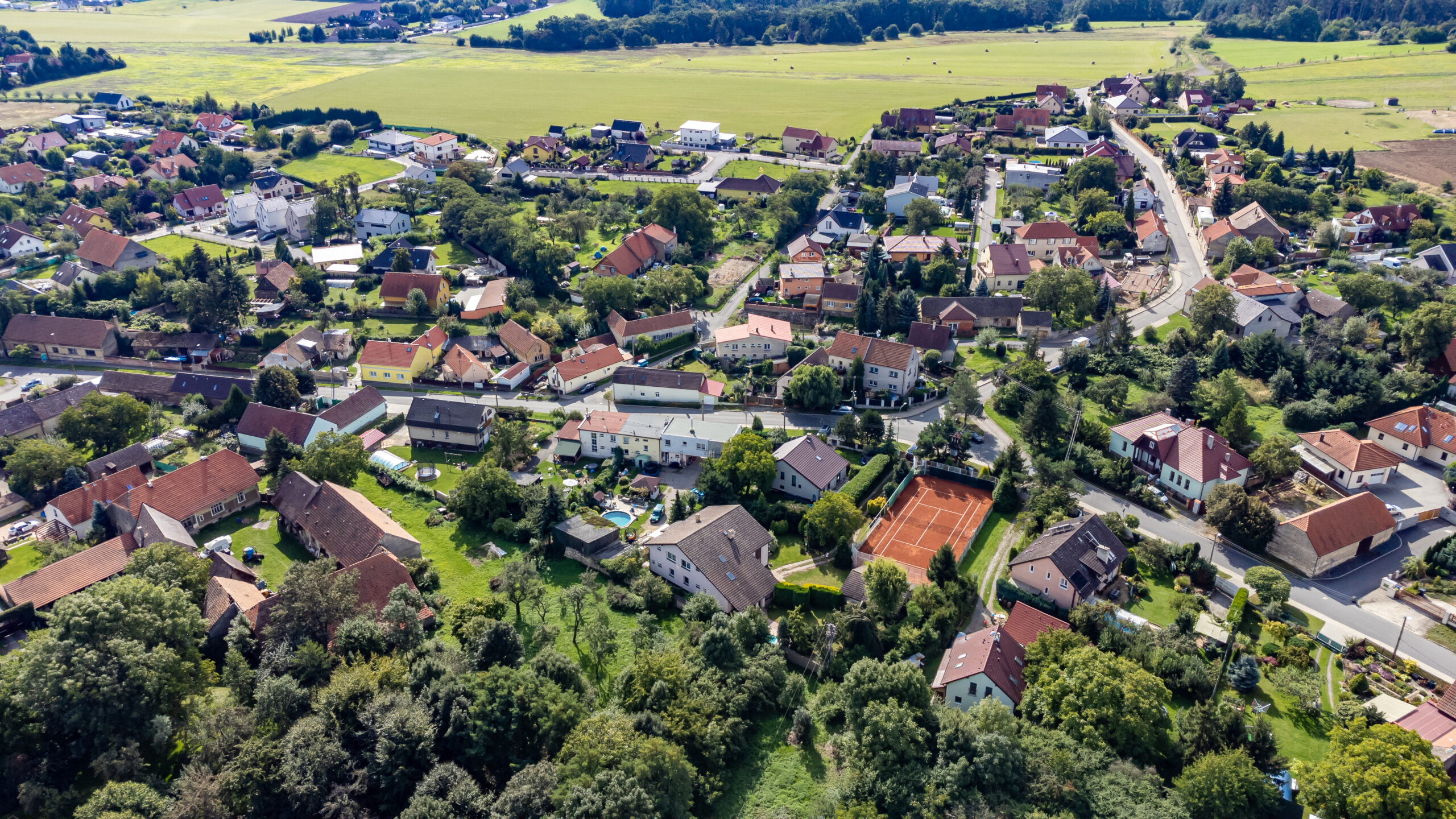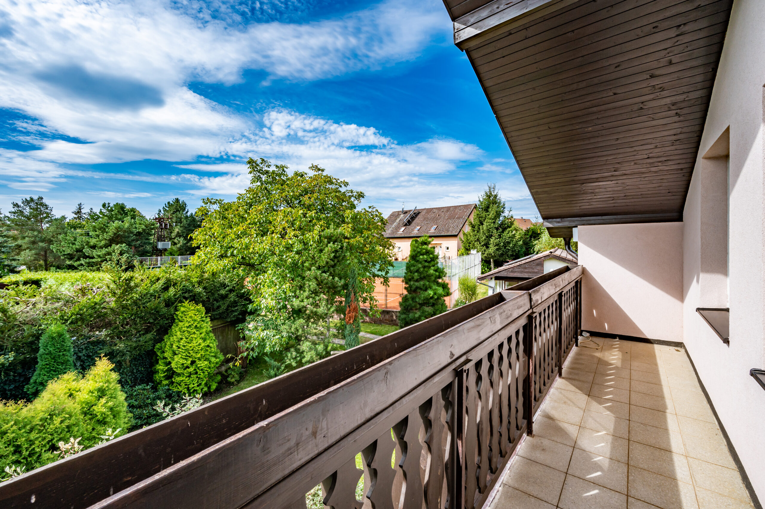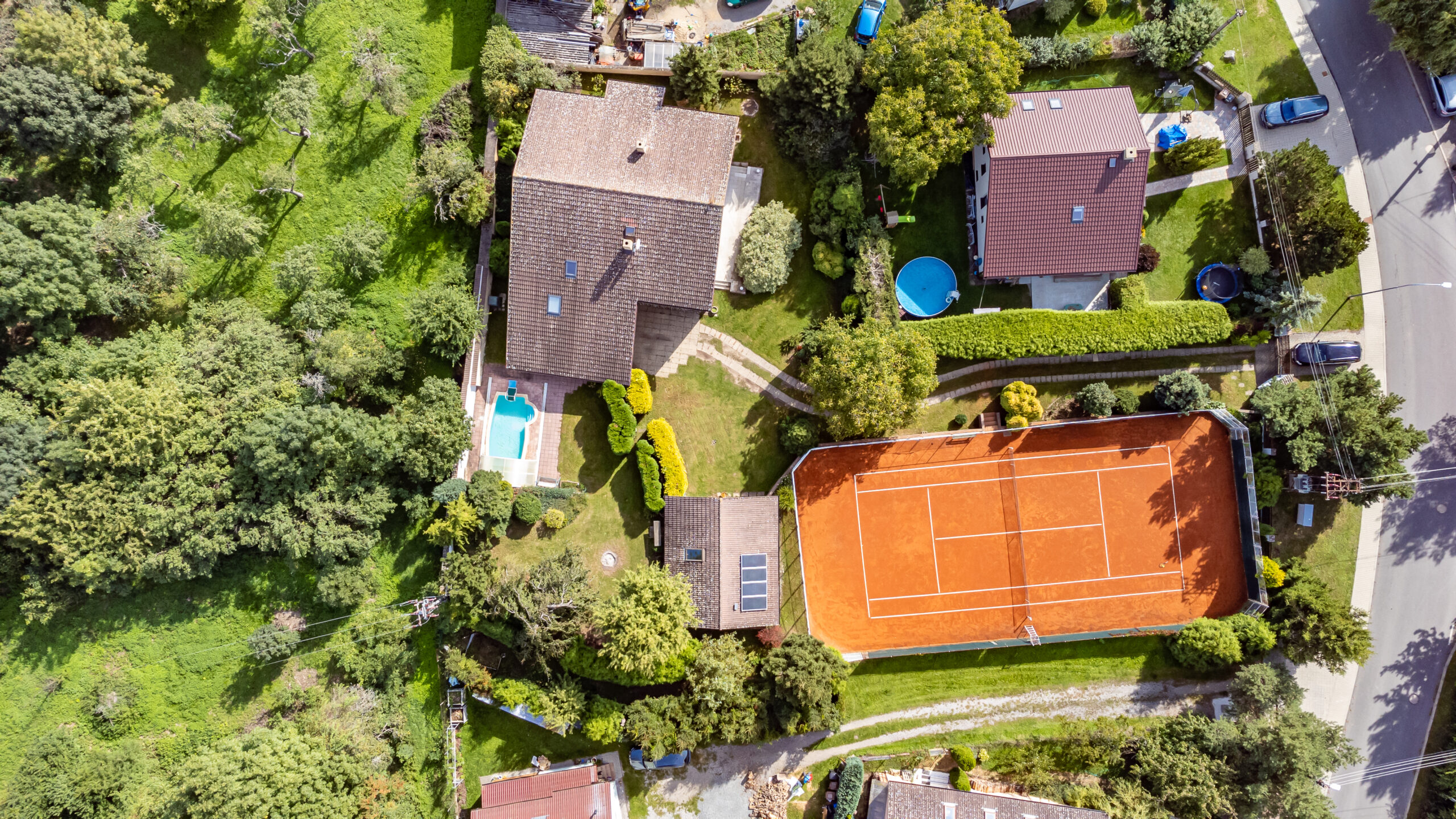 Tenisové nadšence jistě okouzlí privátní antukový kurt s dokonalým zázemím (vč. solárního ohřevu vody), případně lze využít prostor kurtu (530 m2) po úpravě k jinému účelu.